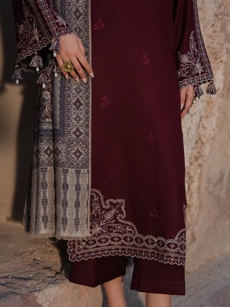 CROSS STITCHED-3PC DHANAK EMBROIDERED SHIRT WITH DHANAK EMBROIDERED SHAWL AND TROUSER-ADR-4161