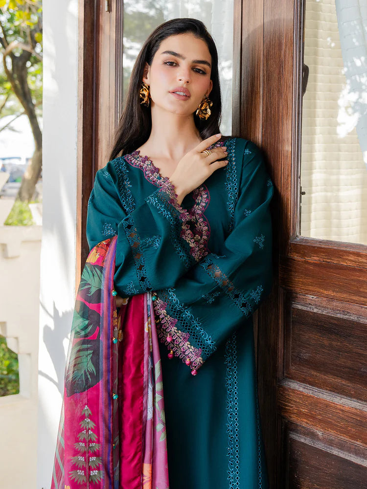 IZEL-3PC LAWN EMBROIDERED SHIRT WITH CHIFFON PRINTED DUPATTA AND TROUSER-ADR-4841