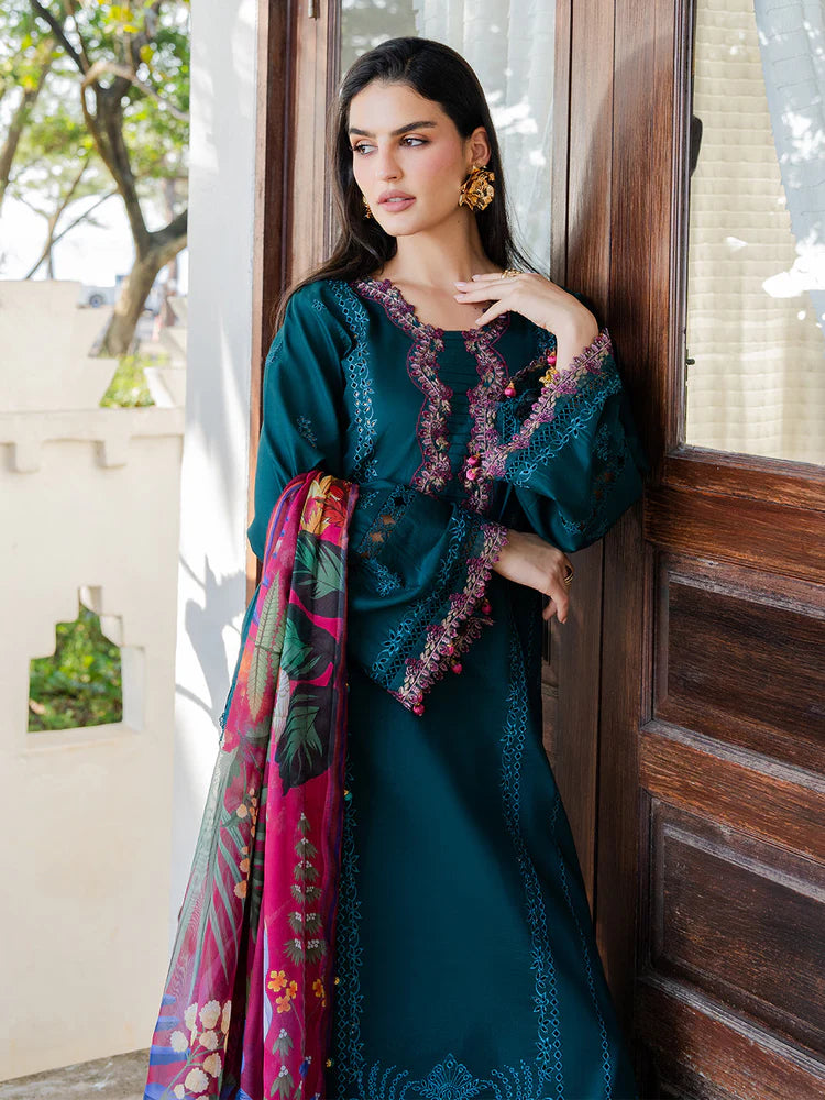 QALAMQAR-3PC LAWN HEAVY EMBROIDERED SHIRT CHIFFON EMB DUPATTA AND EMB TROUSER-ADR-4518