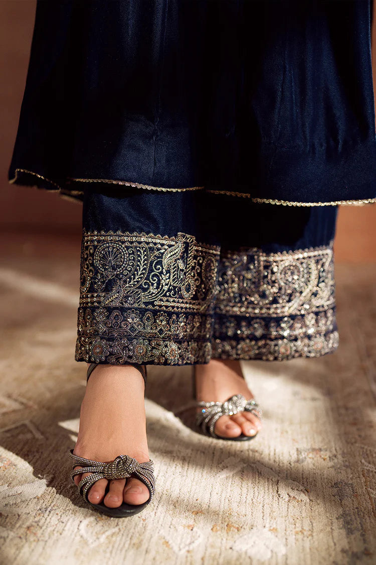 IZNIK-3PC VELVET EMBROIDERED NECKLINE WITH ORGANZA EMBROIDERED DUPATTA & VELVET EMB TROUSER-ADR-4362