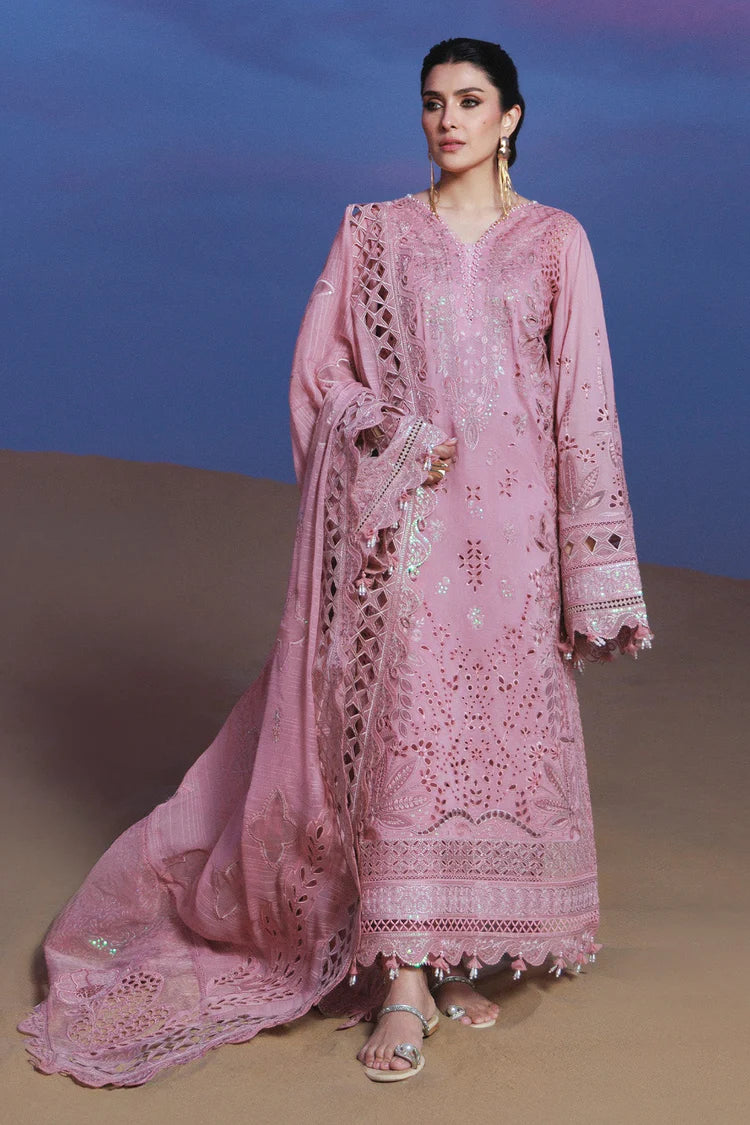 Lawn Embroidered Shirt Lawn Embroidered Sleeves Chiffon Embroidered Dupatta Lawn Embroidered Trouser Lawn Dyed Back Side Unstitched 3PC Dress