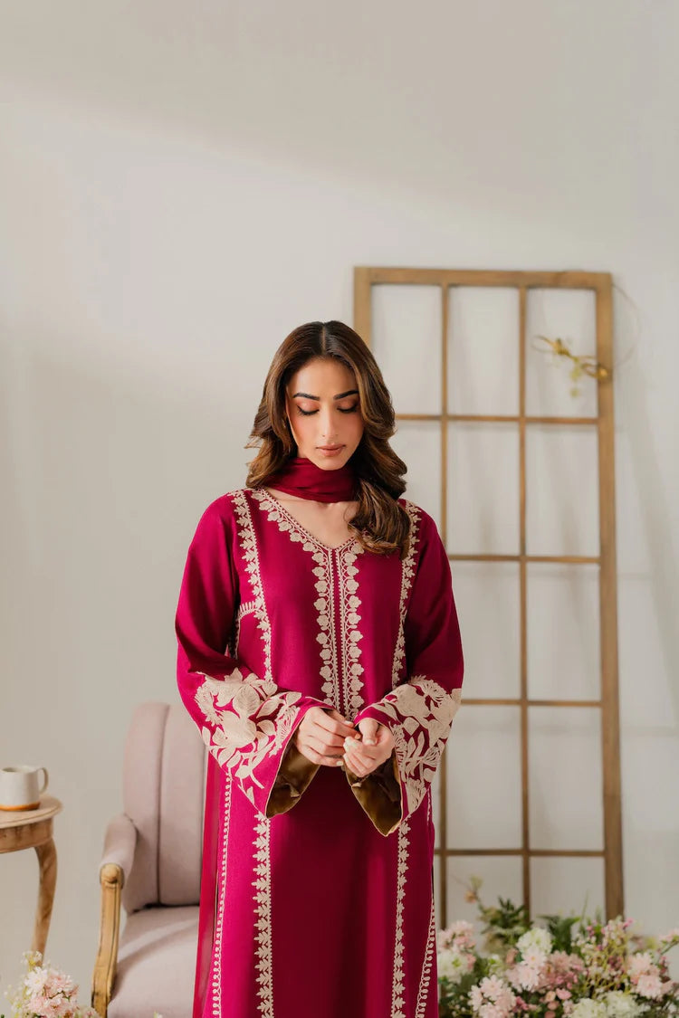 FLORENT-3PC DHANAK EMBROIDERED SHIRT WITH CHIFFON EMBROIDERED DUPATTA & TROUSER-ADR-4151