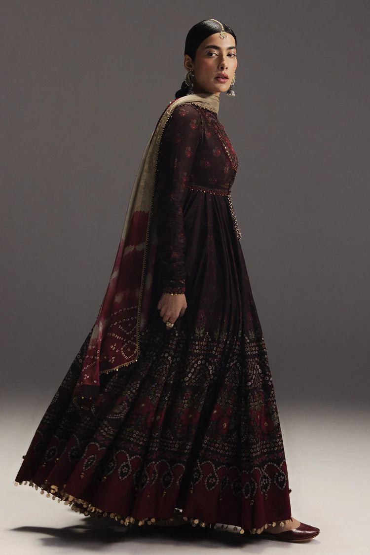 ZARA SHAH JAHAN-3PC DIGITAL PRINTED FROCK WITH SILK PRINTED DUPATTA & DYED TROUSER-ADR-